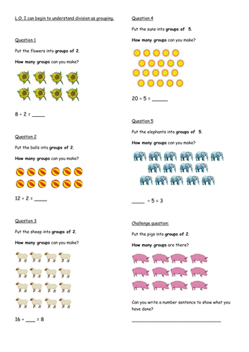I Made These Worksheets For My Year 2 Class To Introduce Division To Them As Grouping (Not Sharing).